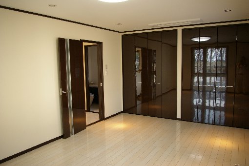 | 2階居室。吹き抜けとの間仕切りが無い分、広大な空間を自分のものにできます。 | 2階寝室。収納力も然ることながらダウンライトの柔らかい光で気分も穏やかです。 |
